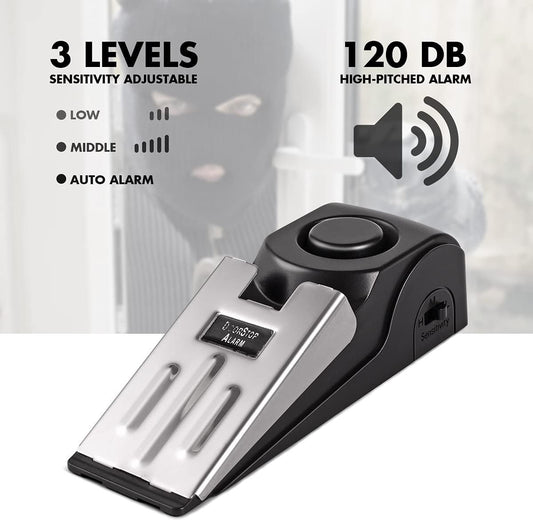Portable Door Stop Alarm, 125dB Burglar Sensor Alarm, Security Door Block System